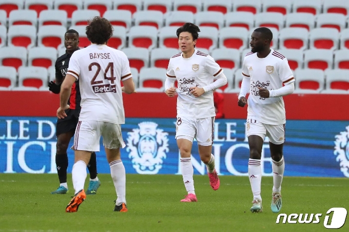| 프랑스 보르도의 황의조(가운데) © AFP=뉴스1 |