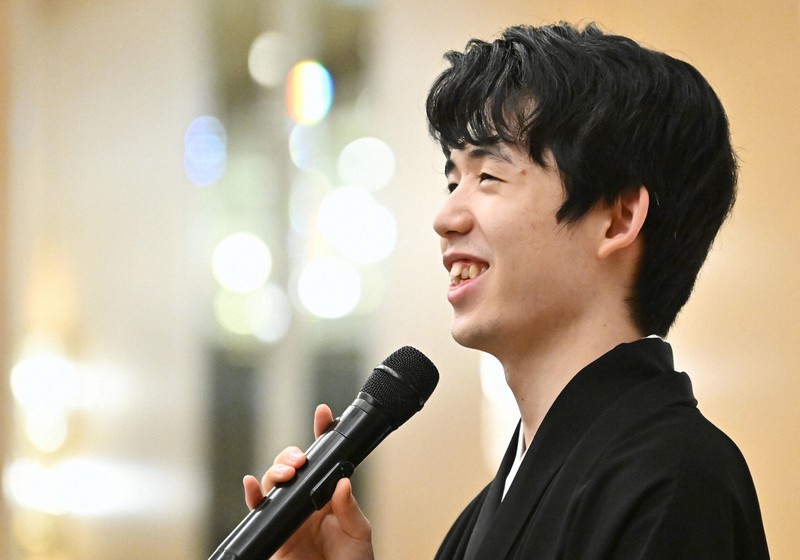 4~6月の第81期名人戦七番勝負(毎日新聞社、朝日新聞社主催、大和証券グループ協賛)を制し、史上最年少の戴冠となった藤井聡太名人(21)の就位式(日本空港ビルデング協力)が7日、東京都大田区の羽田空港で行われた。その後の祝賀会では師匠の杉本昌隆八段(54)も登壇してトークショーが行われた。藤井名人は、6月に開幕した名人戦順位戦の対戦表を目にした際のことを振り返り、「(自身への挑戦者などを決めるため)私の名前がなく、そういったところでも名人になった実感がありました」と意外なところで名人獲得を実感したことを明かした。【丸山進】